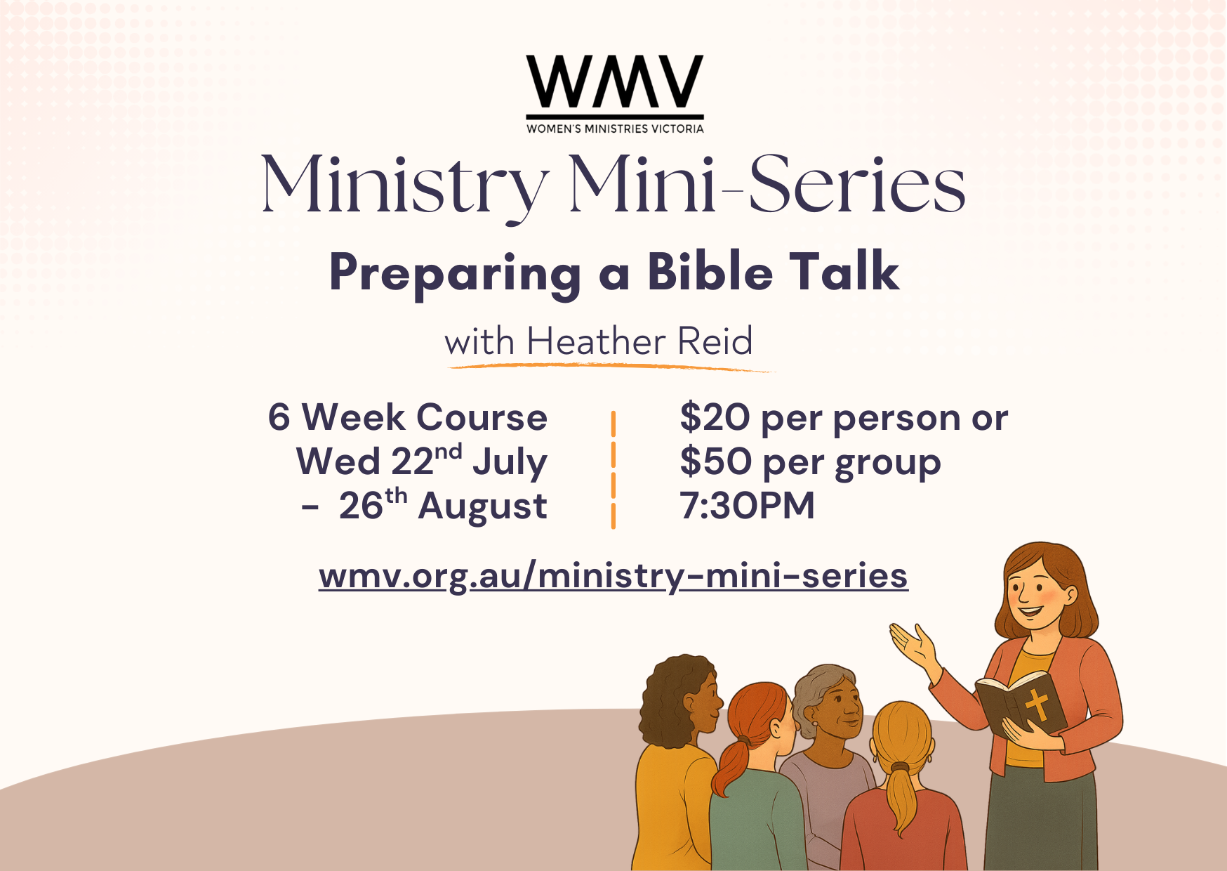 In 2026 WMV is hosting a Ministry Mini-Series on Preparing A Bible Talk. This will take place online, on Wednesday evenings, during July and August for a six-week-long series.